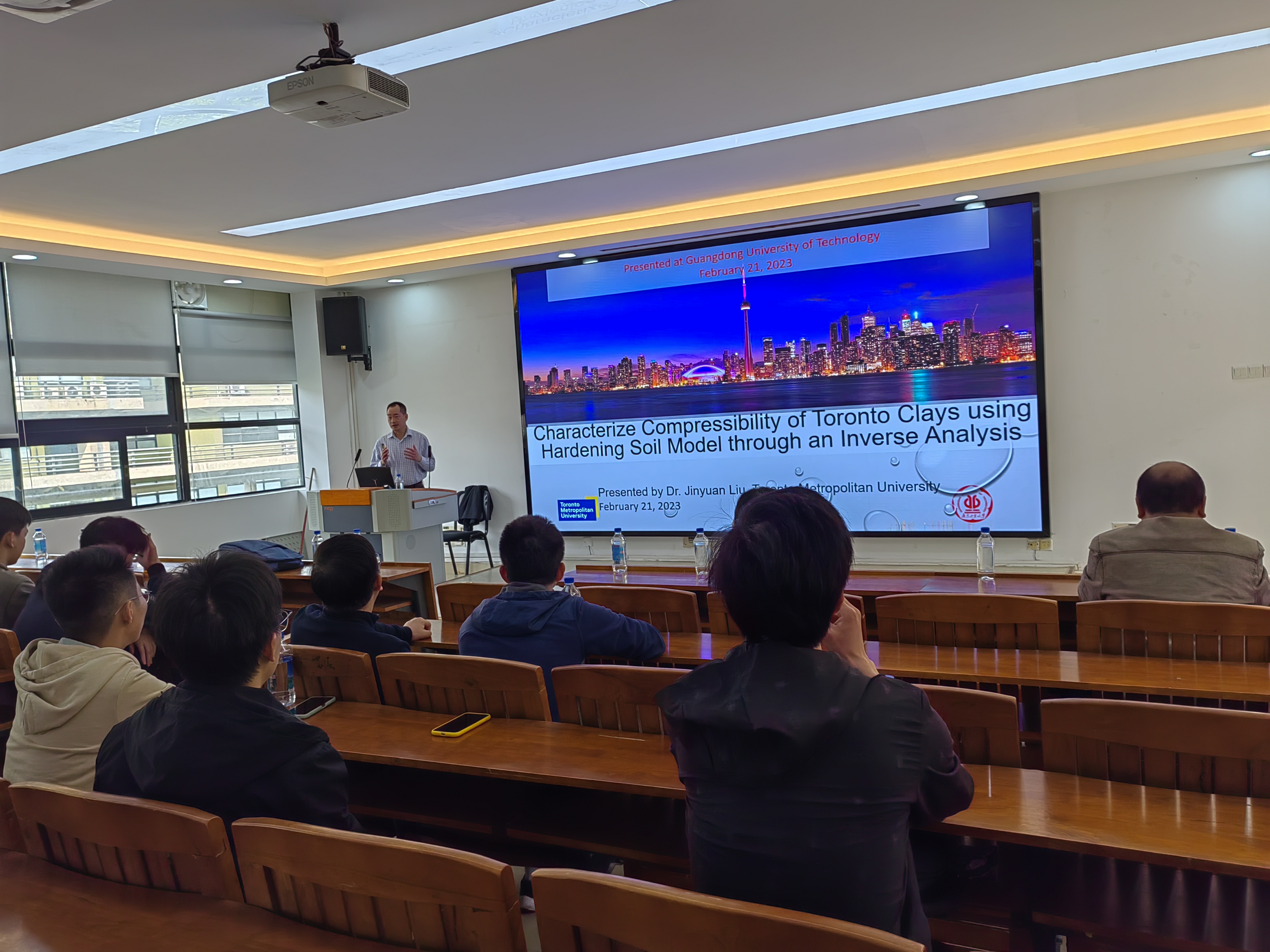 2023年2月21日加拿大多伦多大都会大学(原瑞尔森大学)教授、岩土工程专家、透明土模拟技术专家、纽约大学和同济大学双学位博士刘金元教授应邀为我院师生作题为《基于反分析的多伦多粘土压缩特征的研究》学术报告,报告由袁炳祥教授主持,参与本次讲座的老师还有杨雪强教授,梁仕华教授,王婉莹副教授,罗庆姿副教授,侯振坤高级工程师。