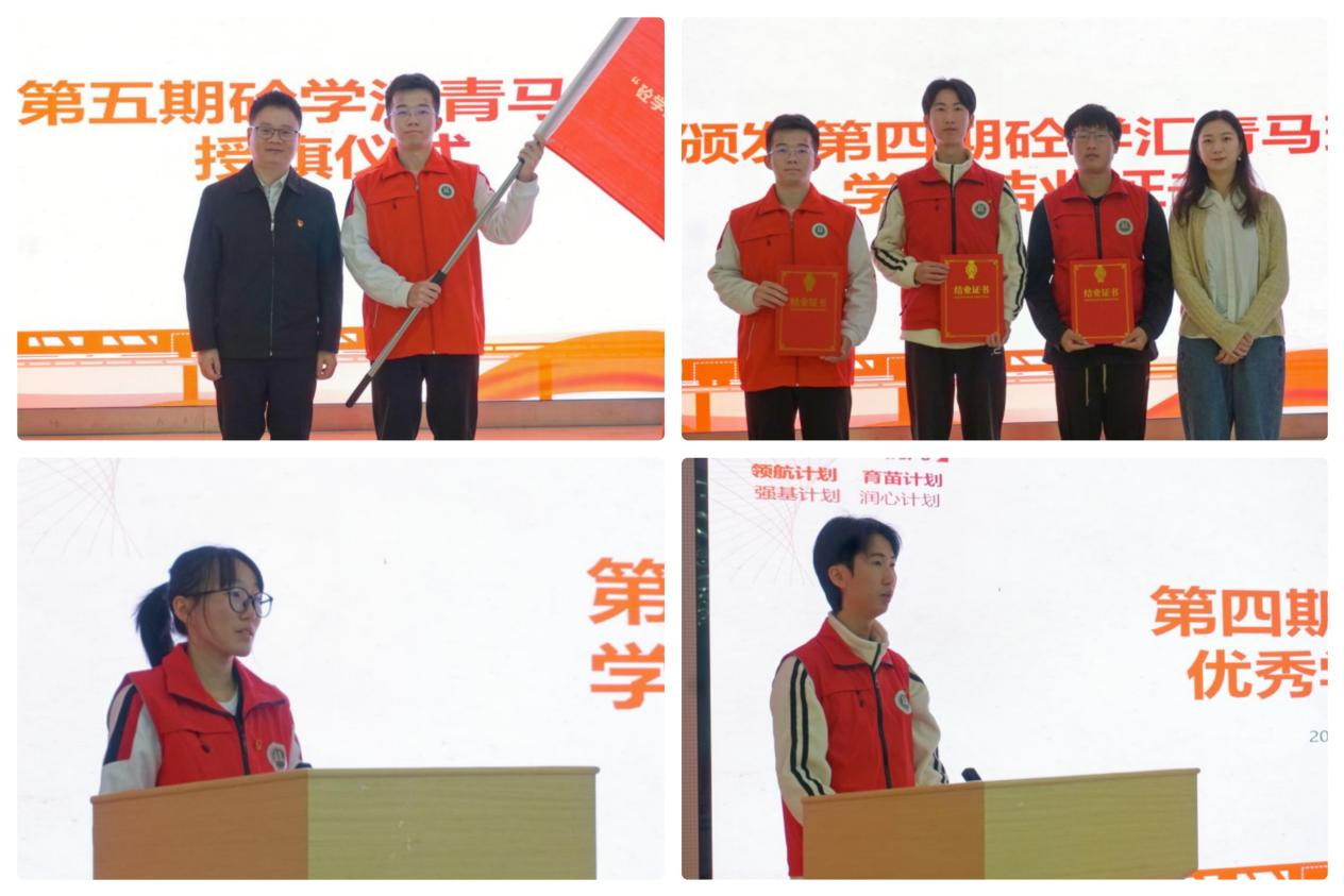 往届优秀学员代表黄俊杰分享了在理论学习、志愿实践中的体会,表达了青马班对其学生干部成长经历的重要意义,勉励全体学员始终以闯劲与巧劲投身实践。第五期青马班学员代表杨乐璇以加入广工3个月的学习经历为主线,分享了对于新一期“青马班”的期待,她带领全体学员宣誓:“以青春之担当赴时代之约,以实干之力践强国有我!”誓词铿锵有力。开班仪式上还进行了第四期学员结业证书颁发仪式和第五期学院授旗、赠书仪式。