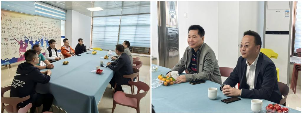 在南翔钢结构工程有限公司,周建强一行与校友们亲切交流。南翔钢构总经理许耿群校友详细介绍了企业的发展历程,重点展示了其自主研发的模块化建筑体系和自动化生产线。