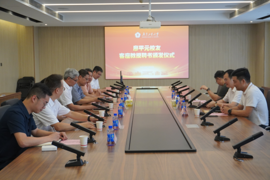 随后,陈卓武向廖平元校友颁发客座教授聘书,并合影留念。