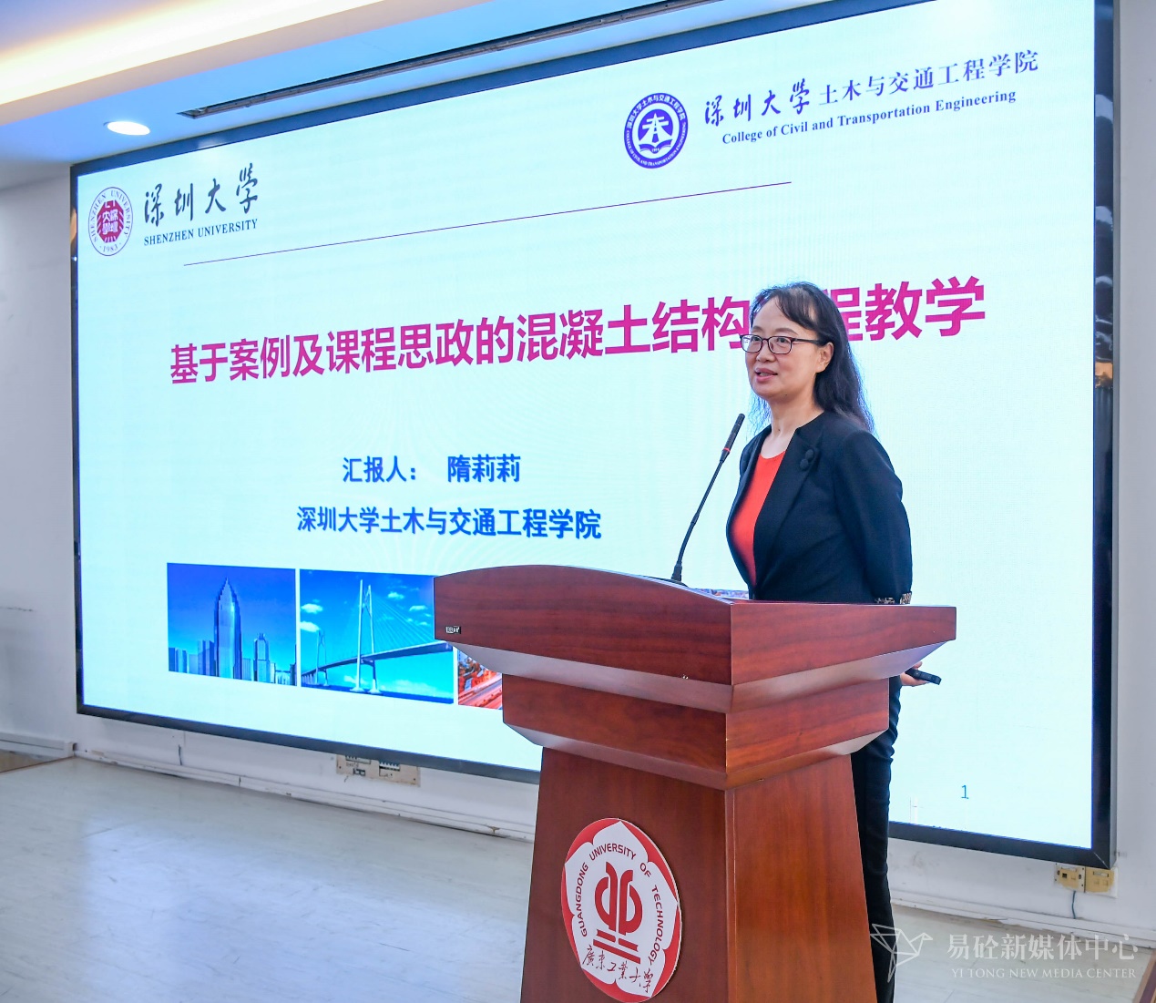 第二场教学研究讲座,深圳大学隋莉莉教授做了题为《基于案例及课程思政的混凝土结构课程教学》的讲座。讲座中,隋教授以《混凝土结构》这门课为背景,分享了专业课程的创新与实践经验和思考;重点分享交流了 “以学生为中心,教学产出为导向,持续改进”的OBE工程教育理念的教学实践,阐述了“重概念强实践、案例教学与科教研融、全过程评价与分组帮扶”的教学创新模式;鼓励青年教师虚心多向老教师取经,学习和积累工程案例,丰富教学资源。