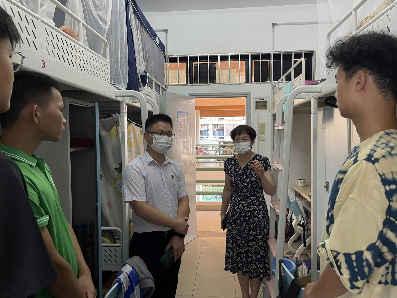 新学期开学初,学院党委书记邓俊、党委副书记陈颂坚和年级辅导员对2021级宿舍进行了走访,给同学们送上清洁剂,表达亲切问候和关心,引导同学们更好地整理清洁“新宿舍”,迎接新学期、拥抱新班级。在走访期间,老师们耐心解答了同学们的困惑,让大家充分感受到学院的关心和爱护。同学们也纷纷表示,理解了学院的良苦用心,感受到了搬迁宿舍带来的便利,相信在接下来的三年,班级同学相处会更融洽,学习交流会更便捷,班级凝聚力也会更强。