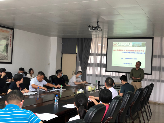 4月26日下午,我院在实验二号楼502会议室召开2022年高校实验室安全教育培训会,院长刘锋出席会议并讲话,学院实验室安全管理员及相关教师参加会议。会议由学院副院长朱江主持。