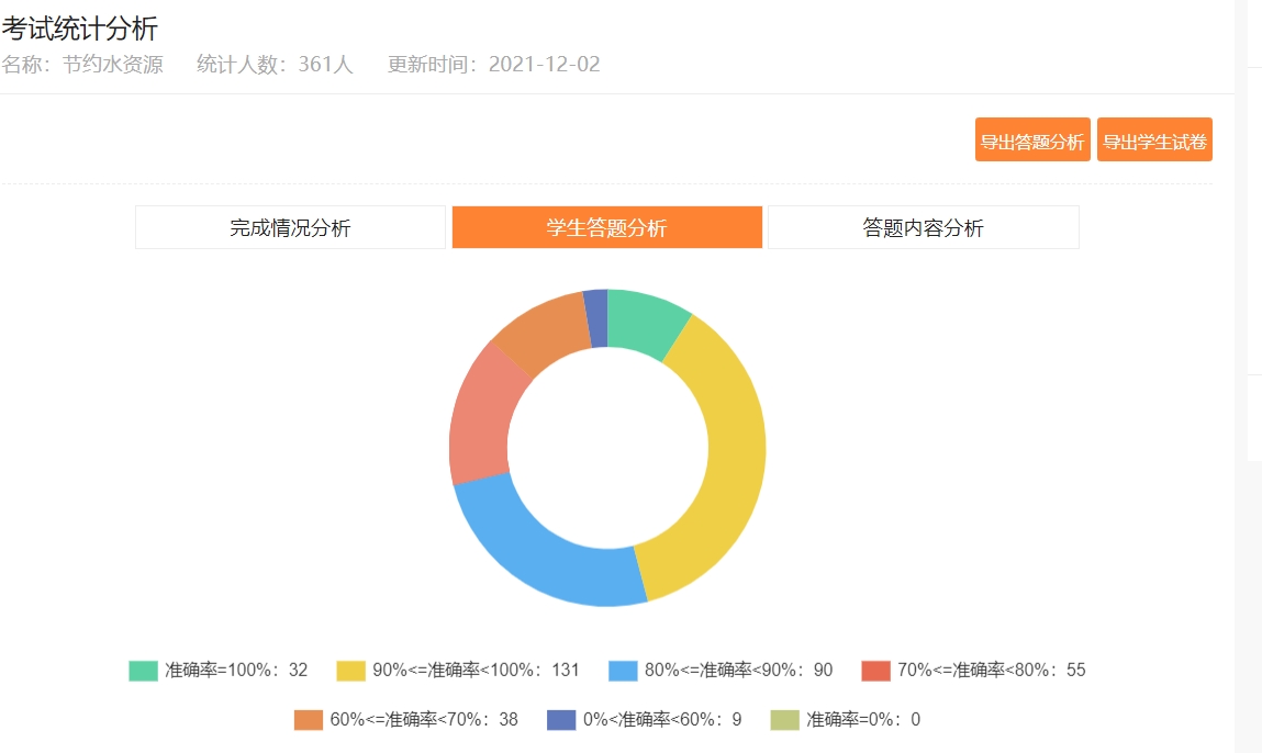 通过进行“节约水资源”主题板块答题,增强了同学们珍惜水资源,节约用水,保护水资源的意识,向同学们普及了基础节水知识。