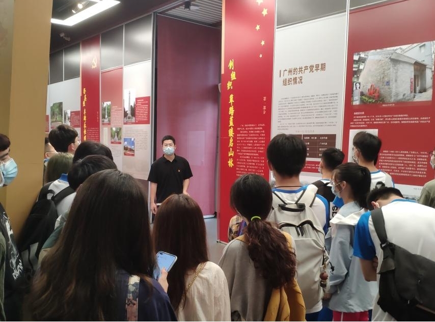 发扬红色传统、传承红色基因,赓续共产党人精神血脉。师生党员一行进入南汉二陵博物馆内,展区“以迹说史”,系统地展现了中国共产党在广州创立党组织并领导广大革命群众开展艰苦斗争、反抗压迫、抵御侵略、争取解放的历史。广州是一座具有革命传统的英雄城市,本次展览呈现出了许多“藏在深巷人未识”的历史故事,为了让大家更好地了解这些“家门口”的史迹,辅导员邝炜坚为学生党员讲解了许多有关于这段革命往事的红色记忆。