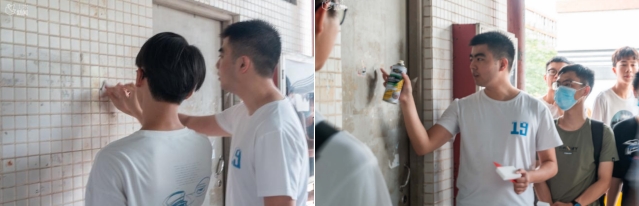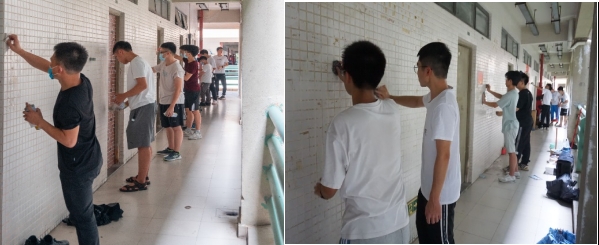活动开始后,每天分别有50名志愿者清扫东六宿舍两个楼层,同学们分好区域,各司其职,有的同学负责清除墙上的贴痕,有的同学负责刮除柱子上的广告,有的同学负责清扫走道上的垃圾。时正值炎炎夏日,四个小时下来,不少志愿者常常挥汗如雨,一些志愿者在完成其负责的区域后,还会主动帮助其他志愿者分担工作,发扬了“奉献、友爱、互助、进步”的志愿精神。在同学们的辛勤劳作下,东六宿舍的环境得到了极大的改善。