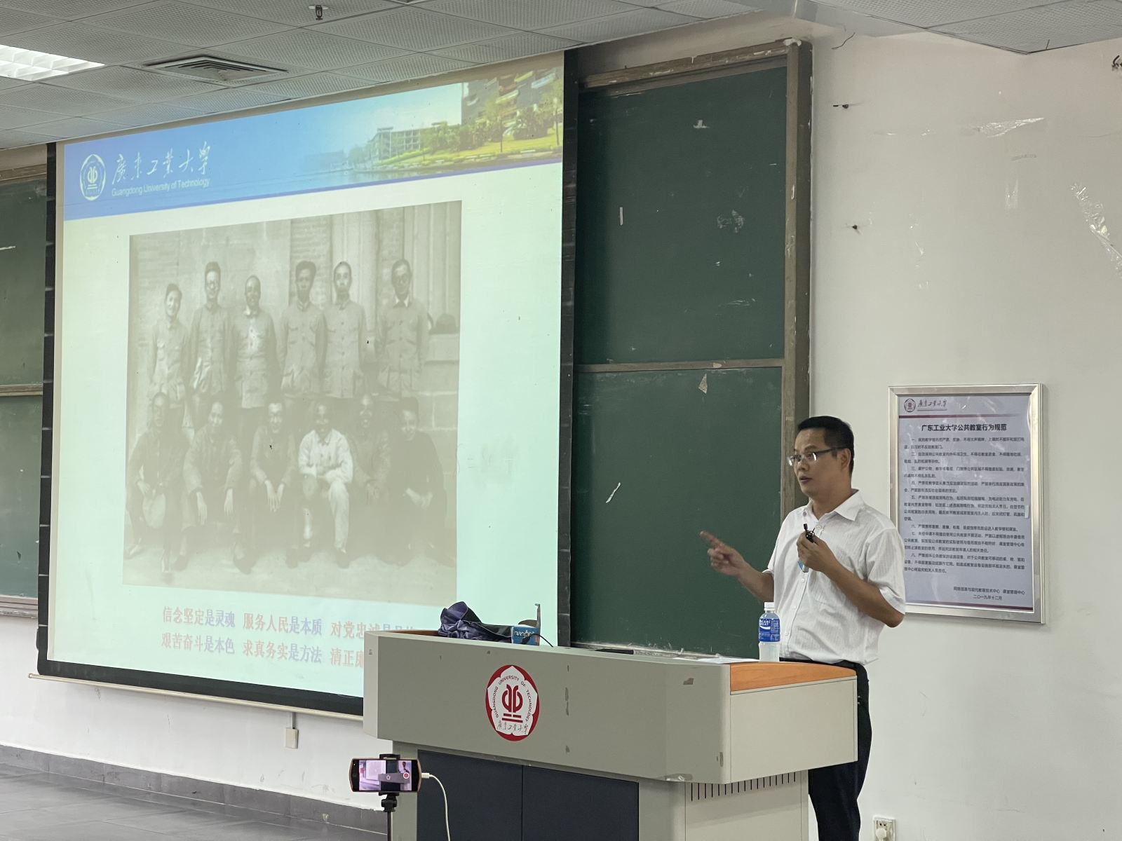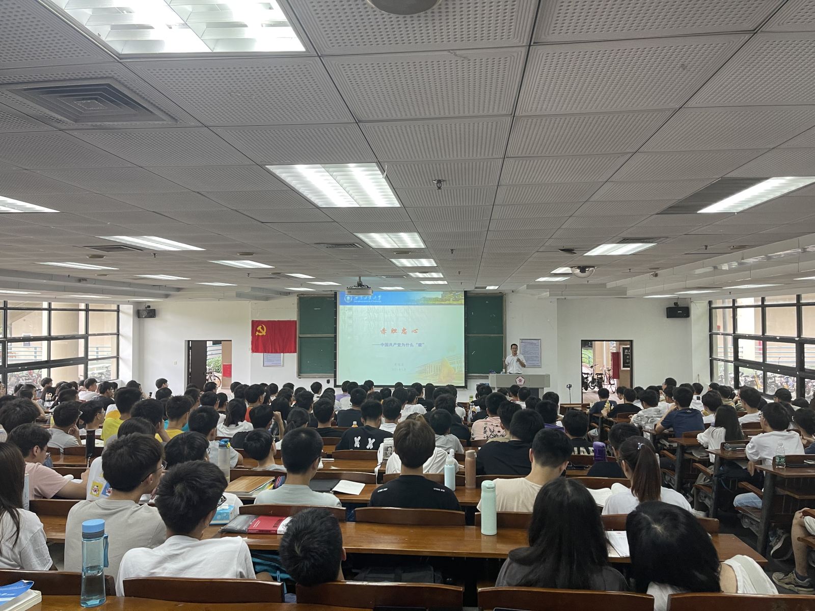 5月18日下午,学校党史学习教育宣讲团成员、政法学院党委书记黄培清老师应邀为我院入党积极分子培训班授课。学院党委书记邓俊老师、副书记陈颂坚老师出席了本次活动,入党积极分子和发展对象230余人聆听学习。