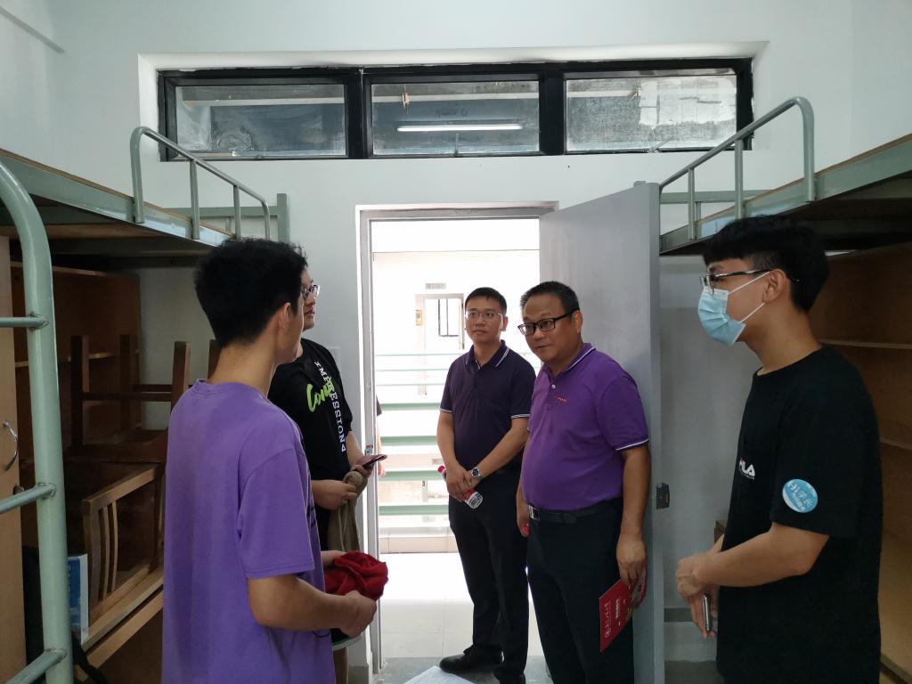 走访过程中,陈卓武副校长与新生进行了亲切交流,详细询问新生的报到情况,了解新生的生源和家庭情况。陈卓武副校长勉励新同学要志存高远,树立好目标,刻苦学习,争取学有所成。张育广书记叮嘱同学们加强安全防范意识,配合好学校疫情防控工作,尽快熟悉和融入大学生活。