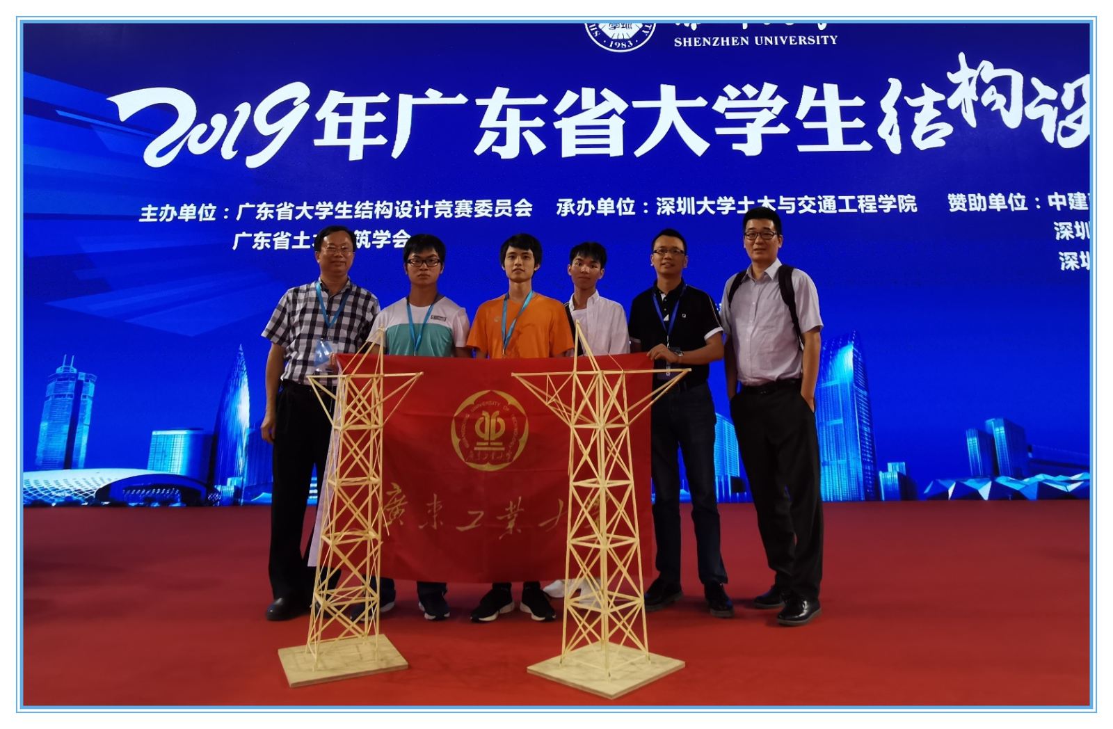 2019年5月31日至6月2日, 2019年广东省大学生结构设计竞赛暨第十三届全国大学生结构设计竞赛广东省分区赛在深圳大学成功举办。本届广东省大学生结构设计竞赛吸引了省内18所高校共38支参赛队伍参加,参赛师生人数达170余人。我校248cc永利集团派出2支队伍参赛,分别获得一等奖和二等奖的好成绩。