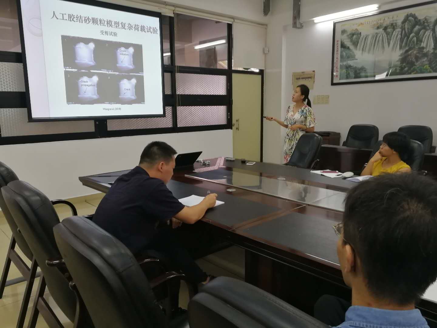 为提升我院学术气氛,促进教师间的科研思想交流,提高我院科研水平,2018年5月28日下午,学院第20期科技交流系列讲座在实验二号楼502会议室举行。本期讲座邀请我院岩土工程研究所教师王婉莹博士为大家做了“砂颗粒破碎的微观力学特性及试验方法探究”的学术报告。学院张徐老师、袁炳祥老师、张建龙老师、郑瑞芸老师、梁仕华老师和部分研究生参加了讲座和讨论。