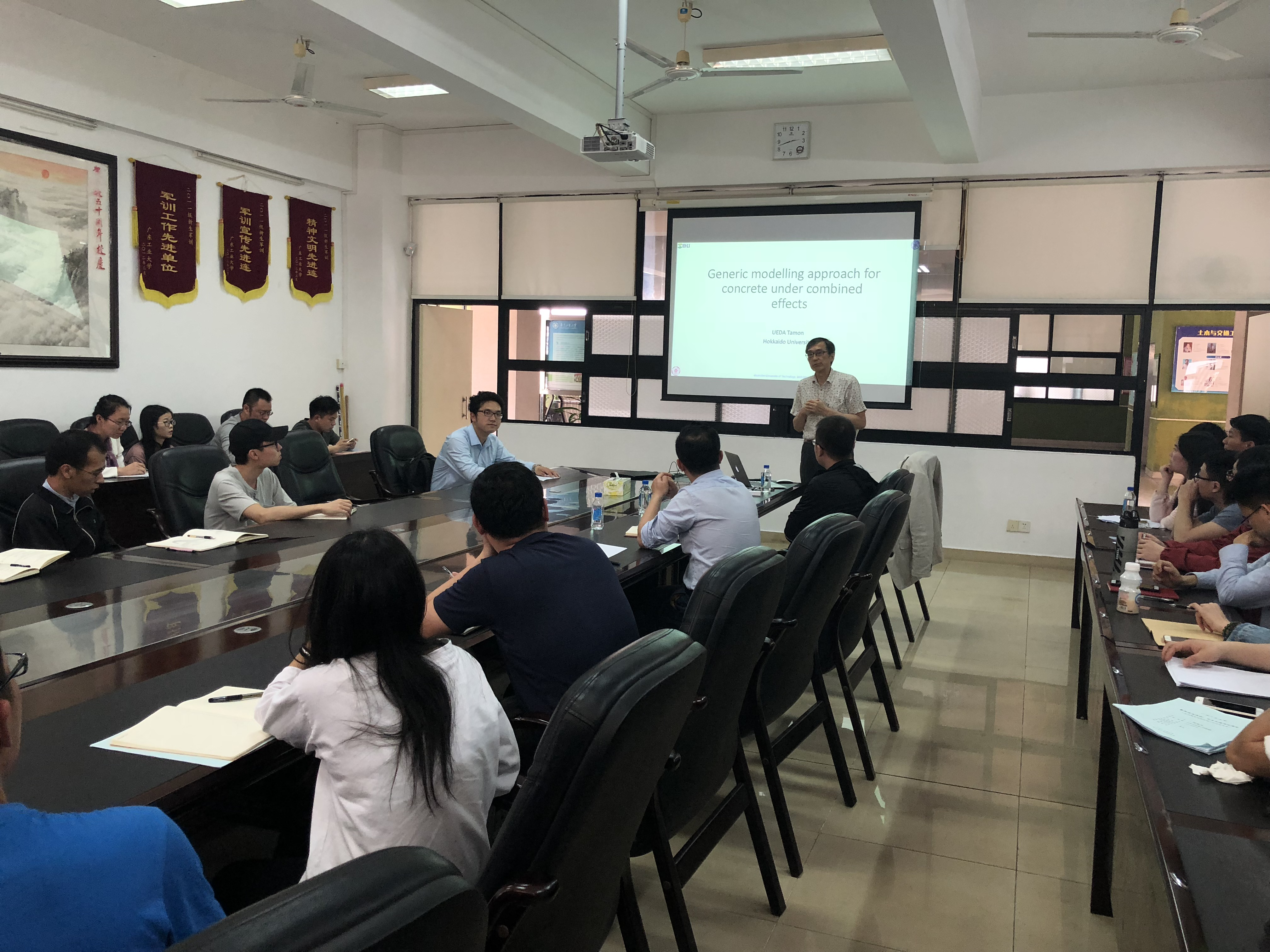 2018年3月16日下午,日本北海道大学著名结构工程专家上田多门教授(Prof. Tamon UEDA)应邀访问我院,并作了题为“Generic modelling approach for concrete under combined effects混凝土复合作用下的统一建模方法”的精彩学术报告。我院部分专业教师及研究生参与了交流。报告会由汪毅博士主持。
