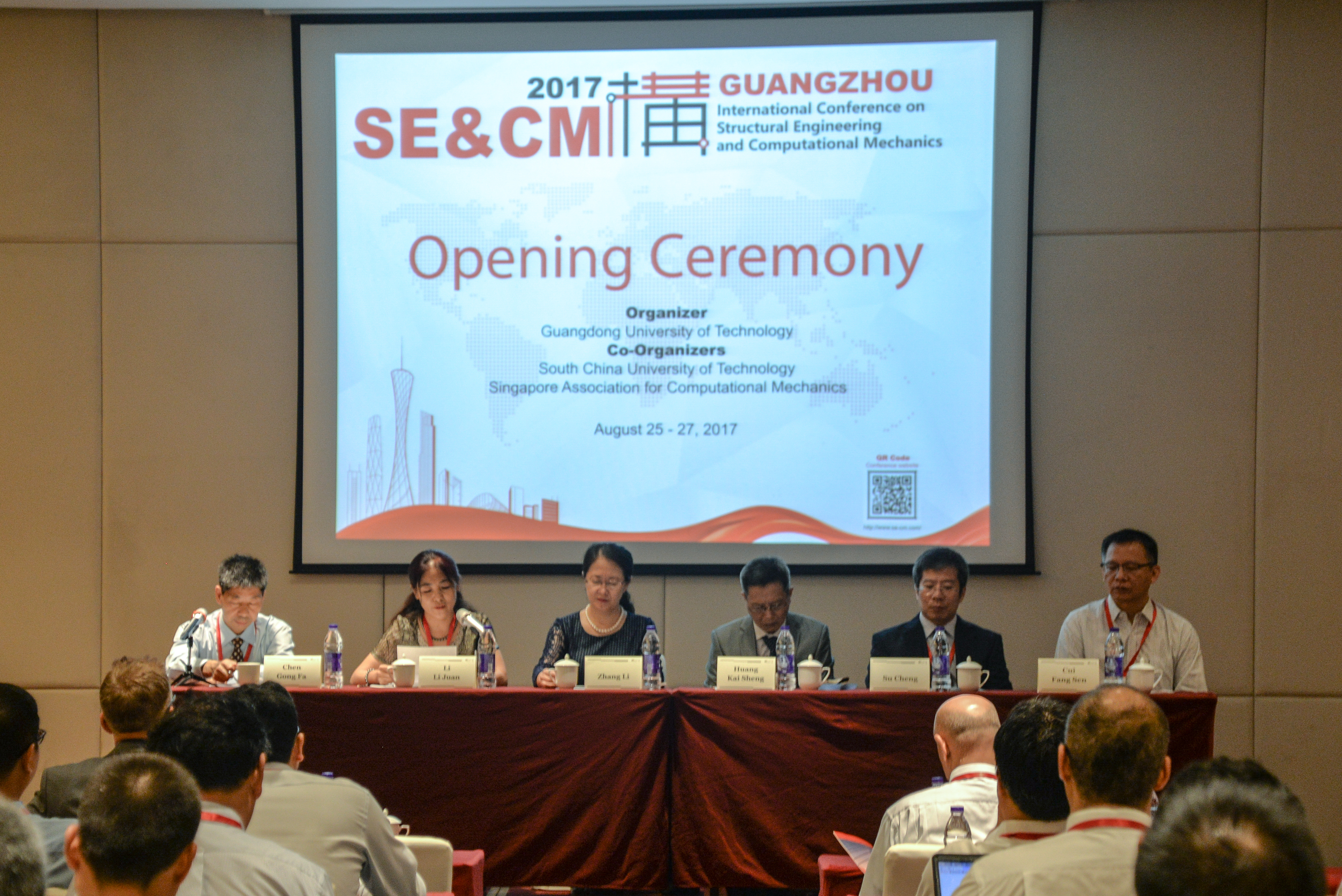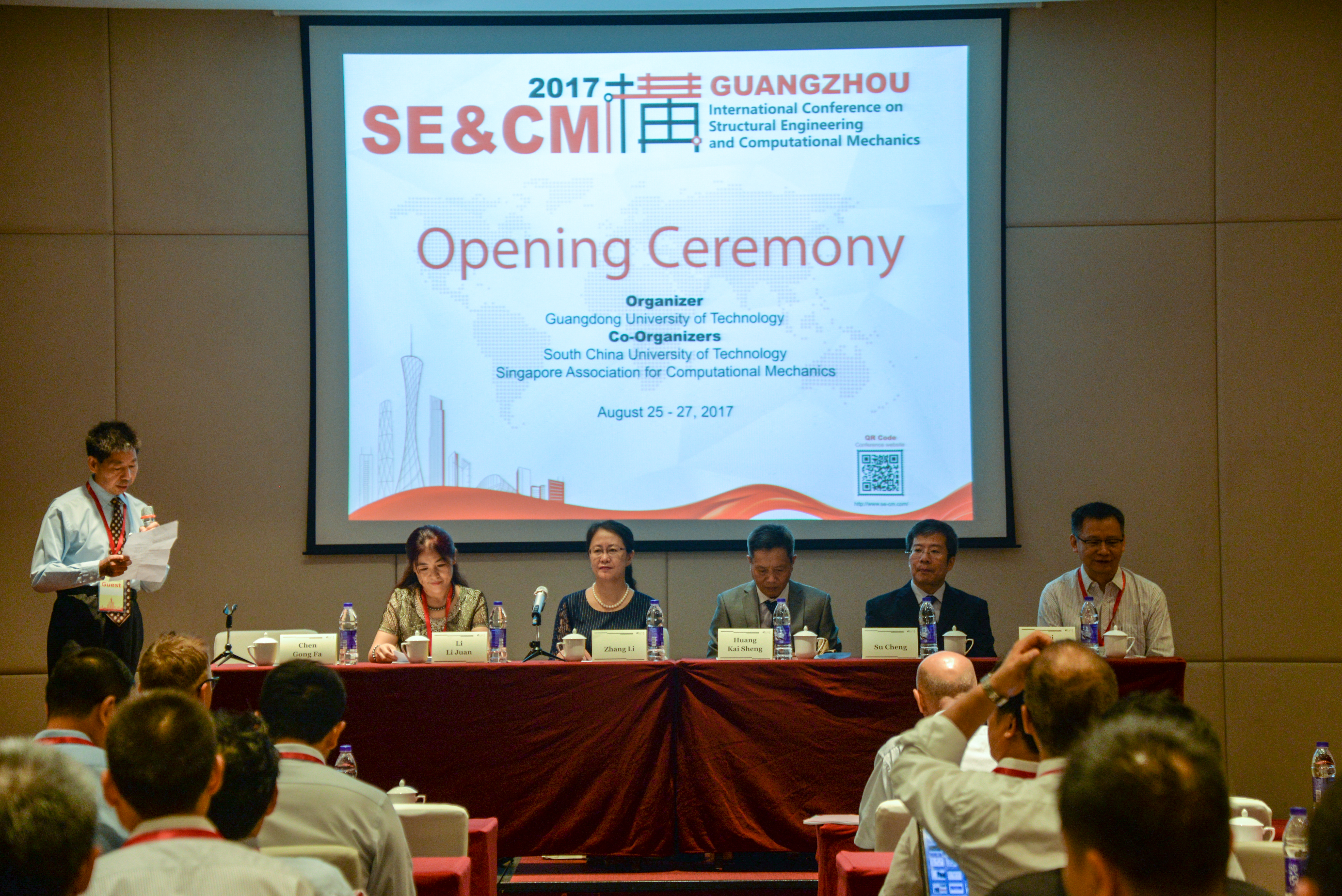 8月25日上午,国际会议正式拉开帷幕,大会主席李丽娟教授致开幕词。张力副校长代表学校对会议的举办表示祝贺,她介绍了学校的基本情况及土木与与交通工程学院的发展,希望通过本次国际会议加强我校和国内外同行的交流合作,依托我校协同创新平台,共同开展前沿科学研究,推动创新人才培养,加速和推进结构工程与计算力学领域的发展。国际合作与交流处及港澳台事务办公室黄开胜处长、华南理工大学校长助理苏成教授以及新加坡力学协会主席崔芳森教授出席了开幕式,开幕式由我校百人特聘教授陈贡发主持。