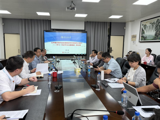 为深入学习贯彻习近平新时代中国特色社会主义思想,全面落实党的二十届四中全会精神,248cc永利集团于10月28日在实验二号楼502会议室组织召开党委理论学习中心组(扩大)会议,专题学习《习近平谈治国理政》第五卷。会议特邀学校马克思主义学院院长揭晓教授作专题讲解,会议由学院党委书记周建强主持,学院党委理论学习中心组成员和党支部书记参会。