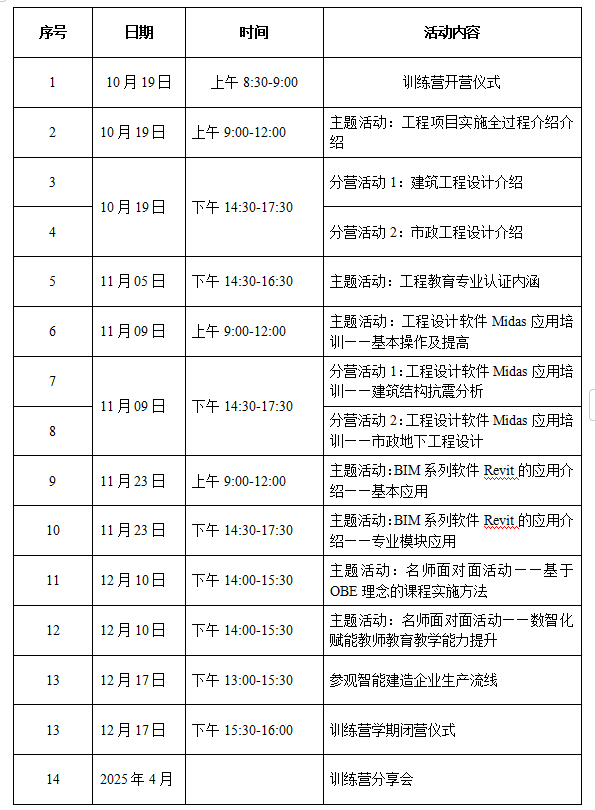 三、 训练营日程安排