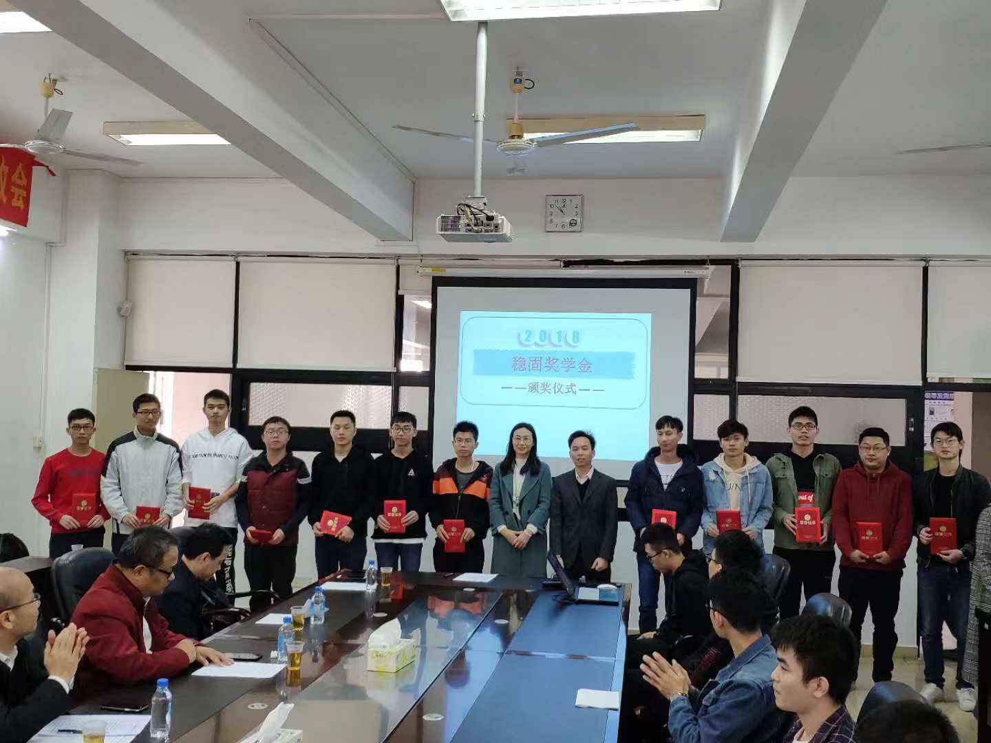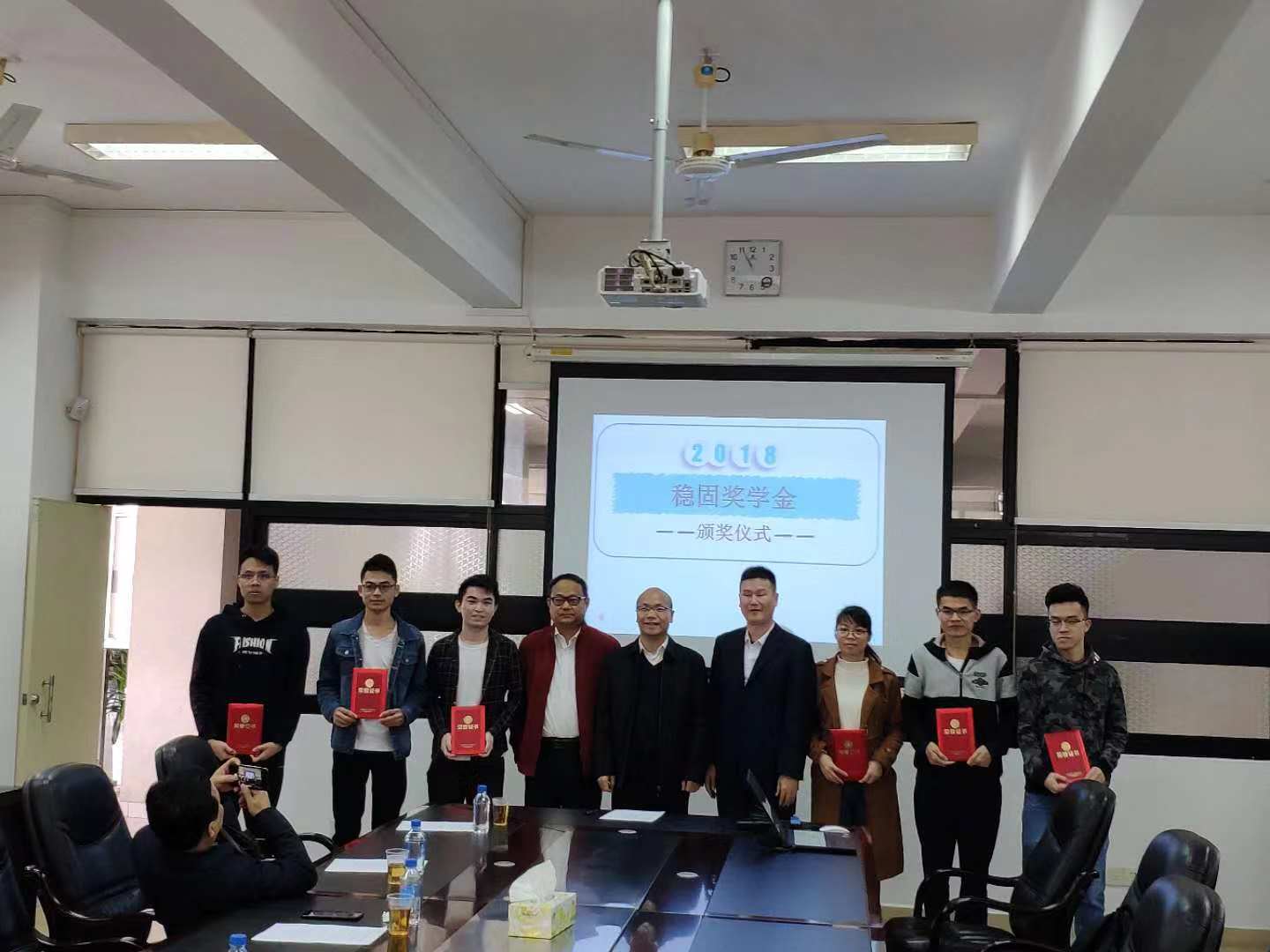 2018年12月28日上午,我院在实验二号楼502举行“稳固奖学金”颁奖仪式。广东稳固检测鉴定有限公司董事长邓锦尚先生、副总经理邝炳添先生、质量负责人刘立创先生、办公室主任何海燕女士,248cc永利集团刘锋院长、党委张育广书记、朱江副院长、全体获奖学生和各年级学生代表出席了本次颁奖仪式。